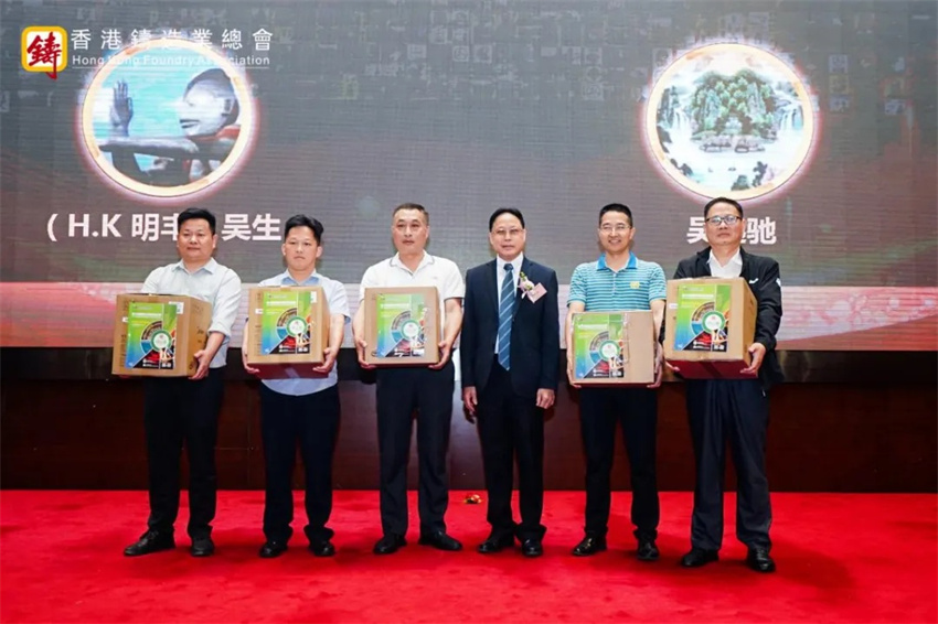 此次活動的成功舉辦,離不開眾多贊助商的慷慨支持。致辭結(jié)束后,香港鑄造業(yè)總會會長梁詩雅女士為海興集團(國際)有限公司[敏感詞]贊助商頒獎;常務(wù)副會長吳健宏為銀牌贊助商訊通展覽公司頒獎;前會長蔡子芳先生為力勁機械國際有限公司、國泰達鳴精密科技集團有限公司、宏豐香港集團有限公司和東莞市力泰精工科技有限公司四家銅牌贊助商頒獎。